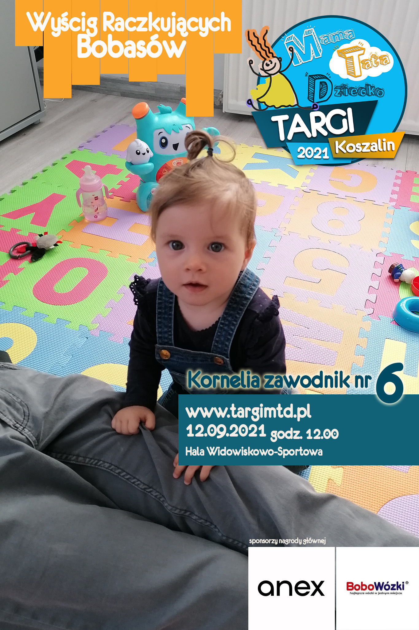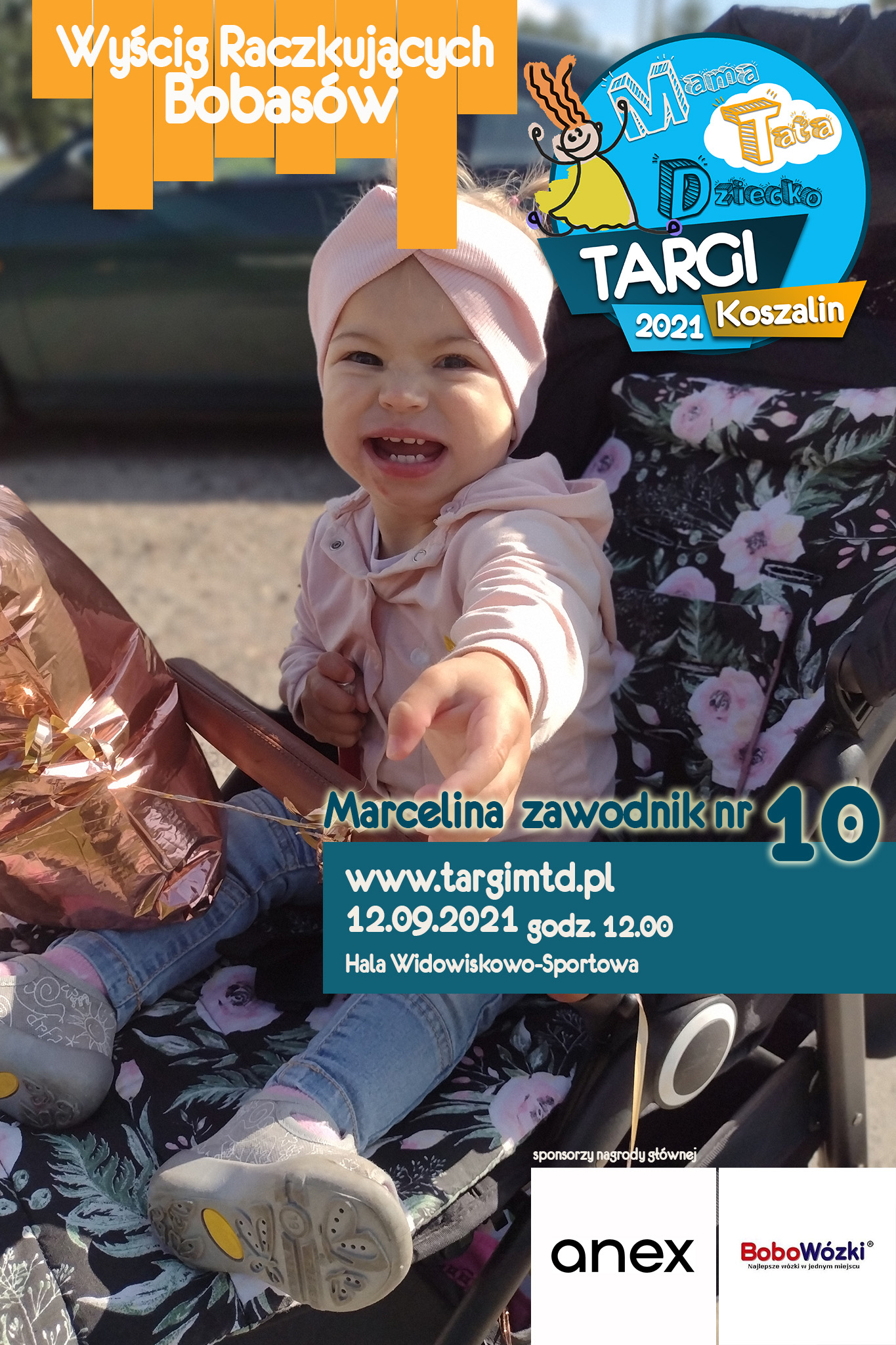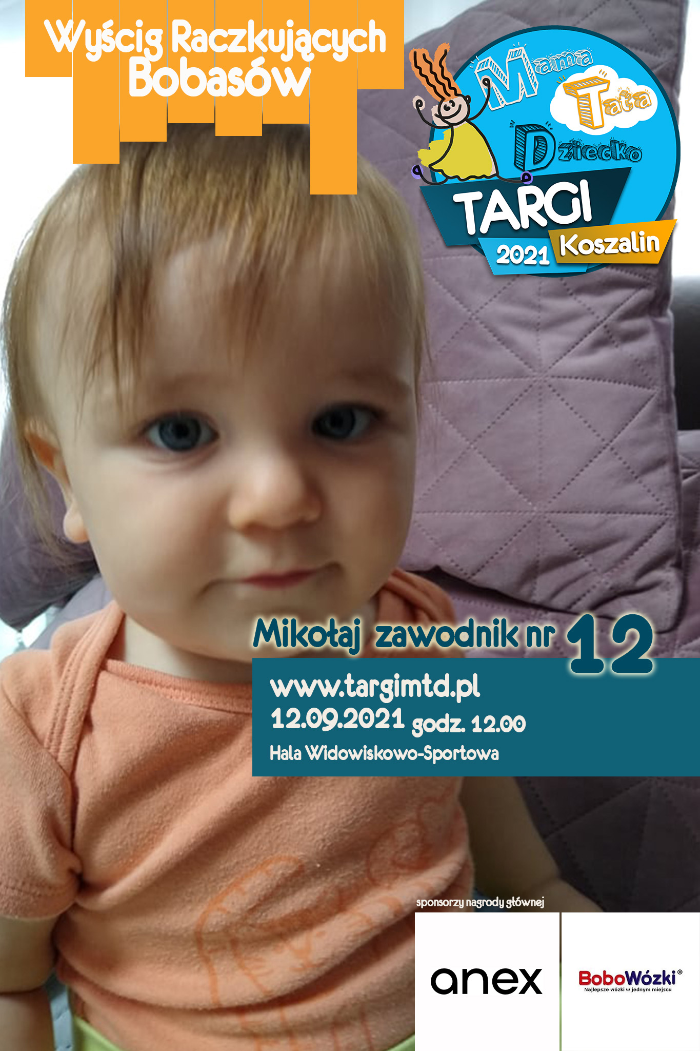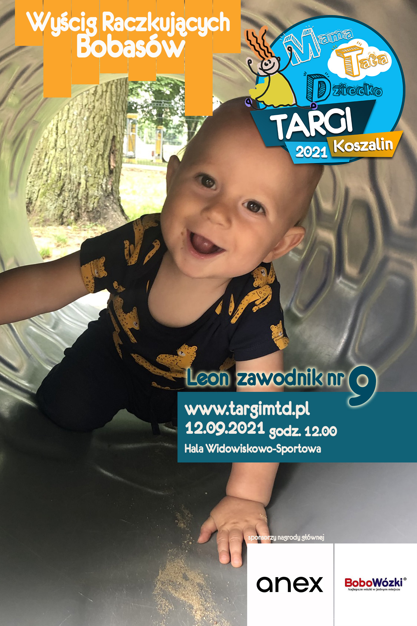To już 3 edycja imprezy imprezy towarzyszącej, która okazała się strzałem w 10. Kilkunastu małych zawodników i zabawna „rywalizacja” na najwyższym światowym poziomie 🙂 Jeśli twój bobas jeszcze we wrześniu będzie raczkował to nie zwlekaj i zgłoś go do zabawy (edit: lista uczestników już zamknięta). Do wygrania atrakcyjne nagrody od naszych sponsorów. W tym roku jest to wysokiej klasy spacerówka firmy ANEX BABY o wartości 1599 zł od sklepu BOBOWÓZKI Koszalin. O szczegóły prosimy pytać mailowo targi123expo@gmail.com