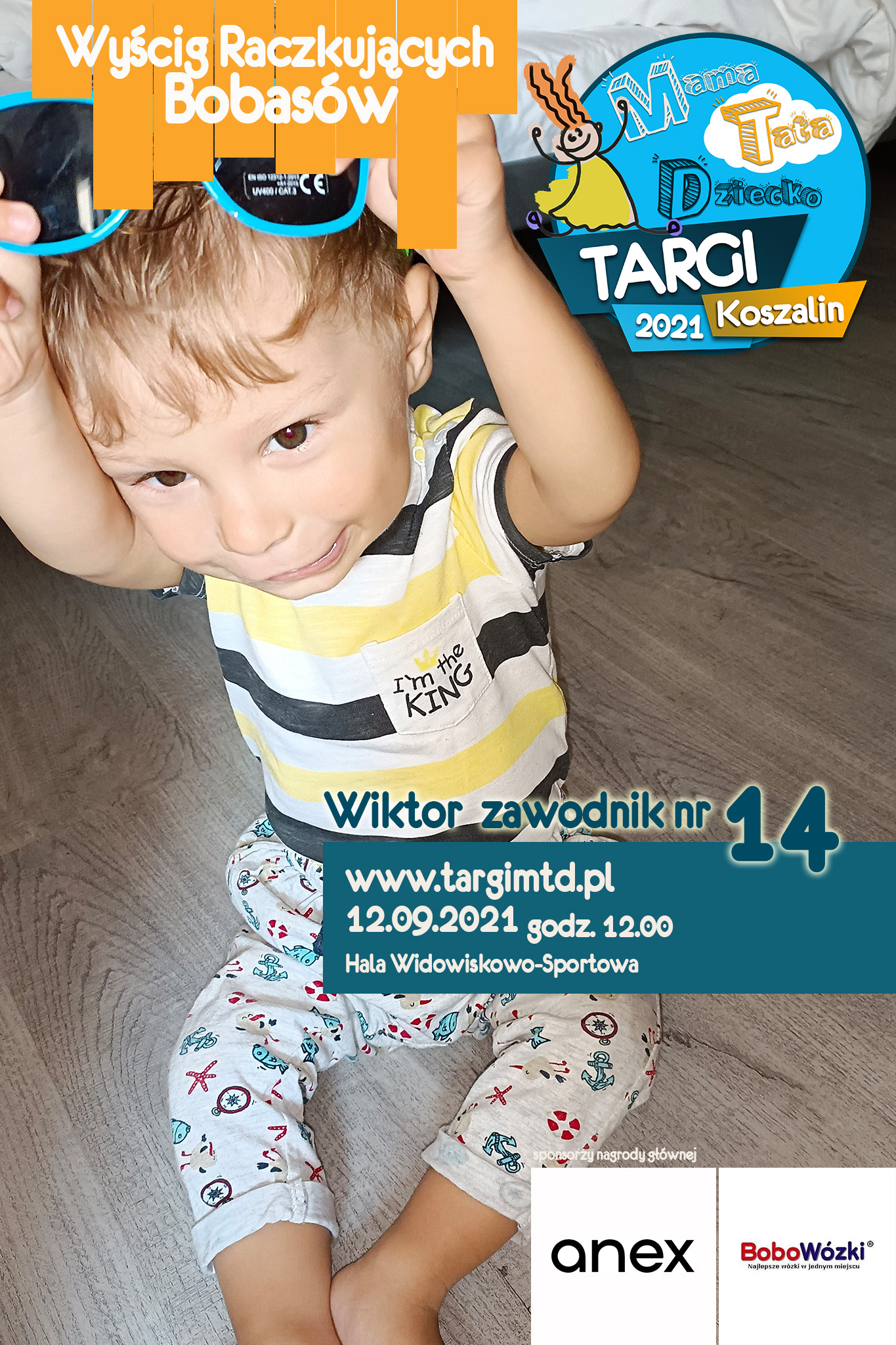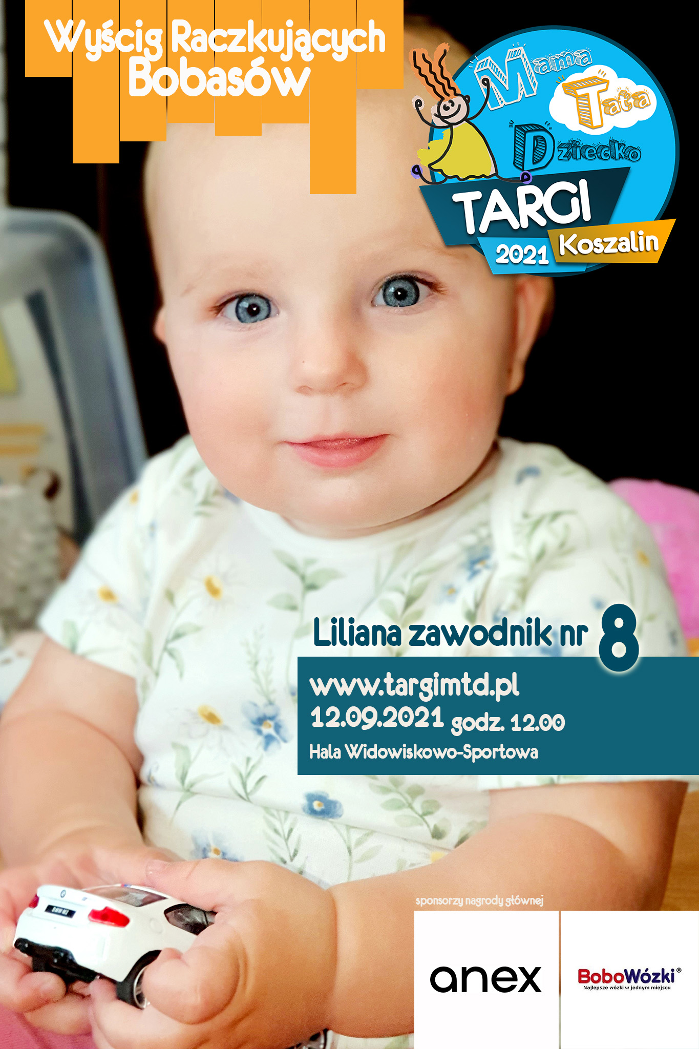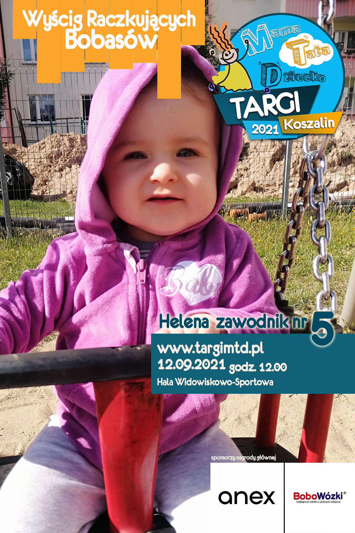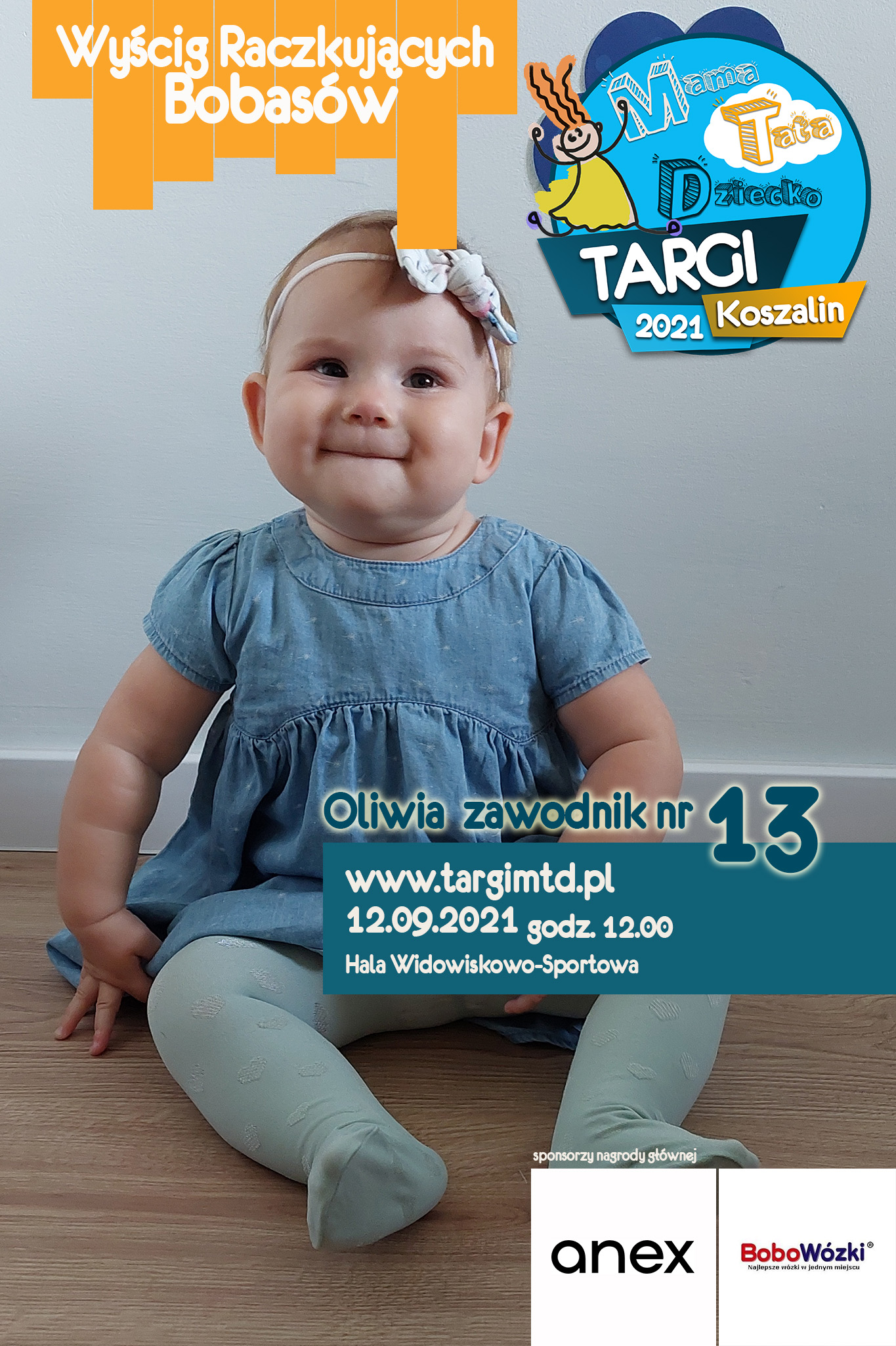 To już 3 edycja imprezy imprezy towarzyszącej, która okazała się strzałem w 10. Kilkunastu małych zawodników i zabawna „rywalizacja” na najwyższym światowym poziomie 🙂 Jeśli twój bobas jeszcze we wrześniu będzie raczkował to nie zwlekaj i zgłoś go do zabawy (edit: lista uczestników już zamknięta). Do wygrania atrakcyjne nagrody od naszych sponsorów. W tym roku jest to wysokiej klasy spacerówka firmy ANEX BABY o wartości 1599 zł od sklepu BOBOWÓZKI Koszalin. O szczegóły prosimy pytać mailowo targi123expo@gmail.com