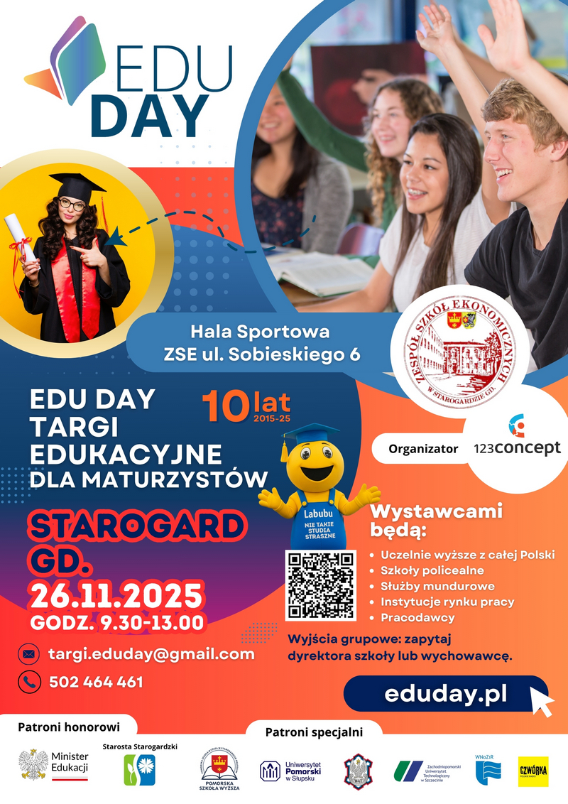 Targi EDU DAY to znane wydarzenie na mapie edukacyjnego Pomorza. Od grudnia 2015 roku impreza odbywała się już ponad 60 razy w łącznie 12 miastach Północnej Polski, a w tym roku także dochodzą kolejne: Chojnice, Piła, Tczew, Starogard Gdański i Kwidzyn.